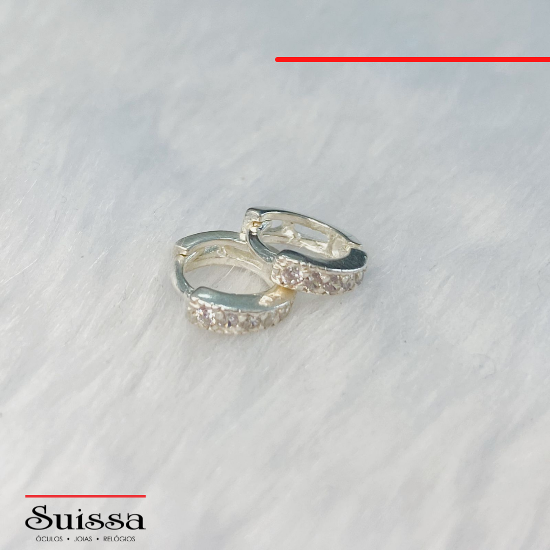 Lindas argolas pequenas confeccionadas em prata 925, acabamento polido e cravejadas de zircônias brancas.