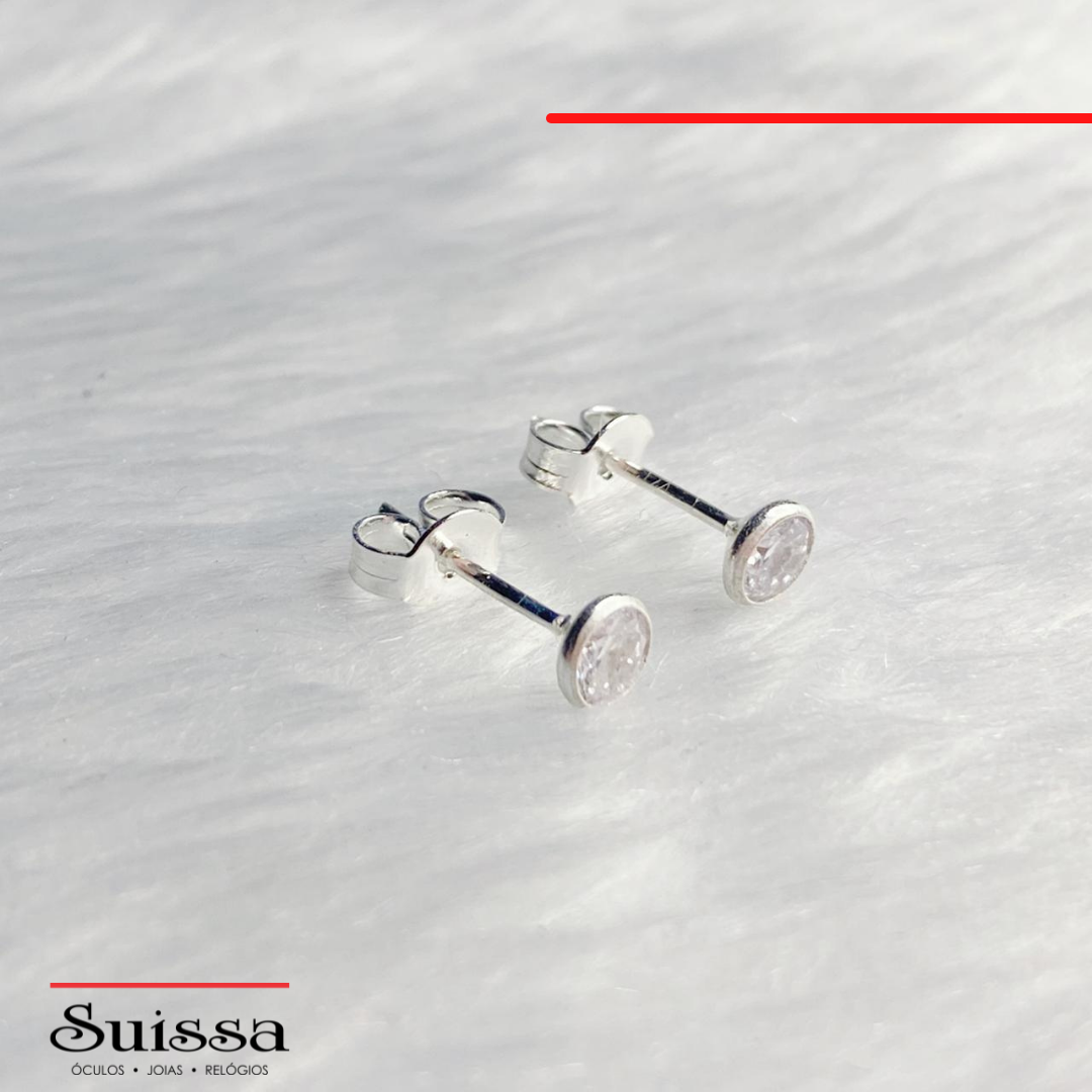 Par de Brincos em Prata 925 Redondo Zircônia Branca 4mm