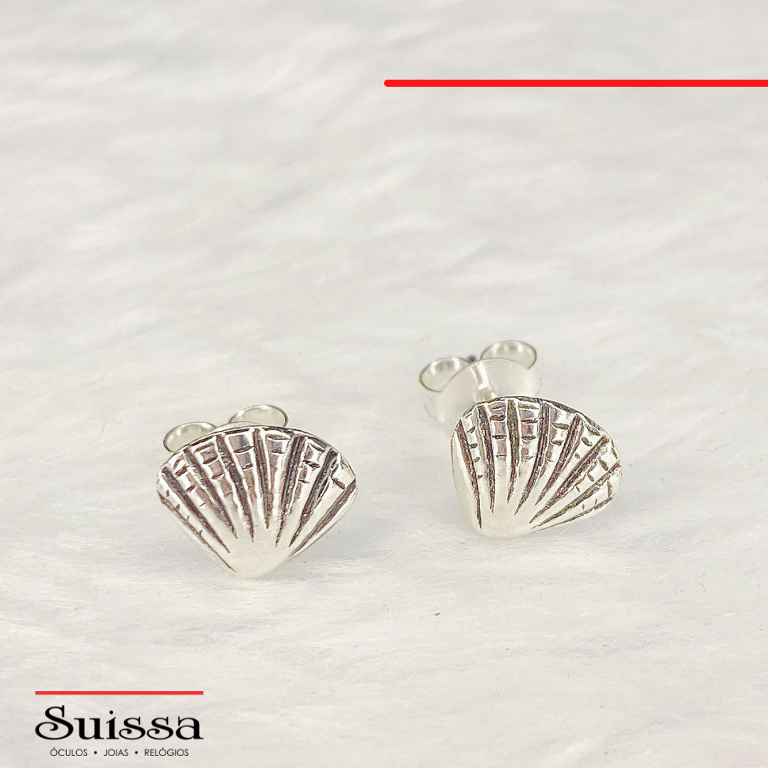lindos brincos confeccionados em prata 925, acabamento polido e design de concha.