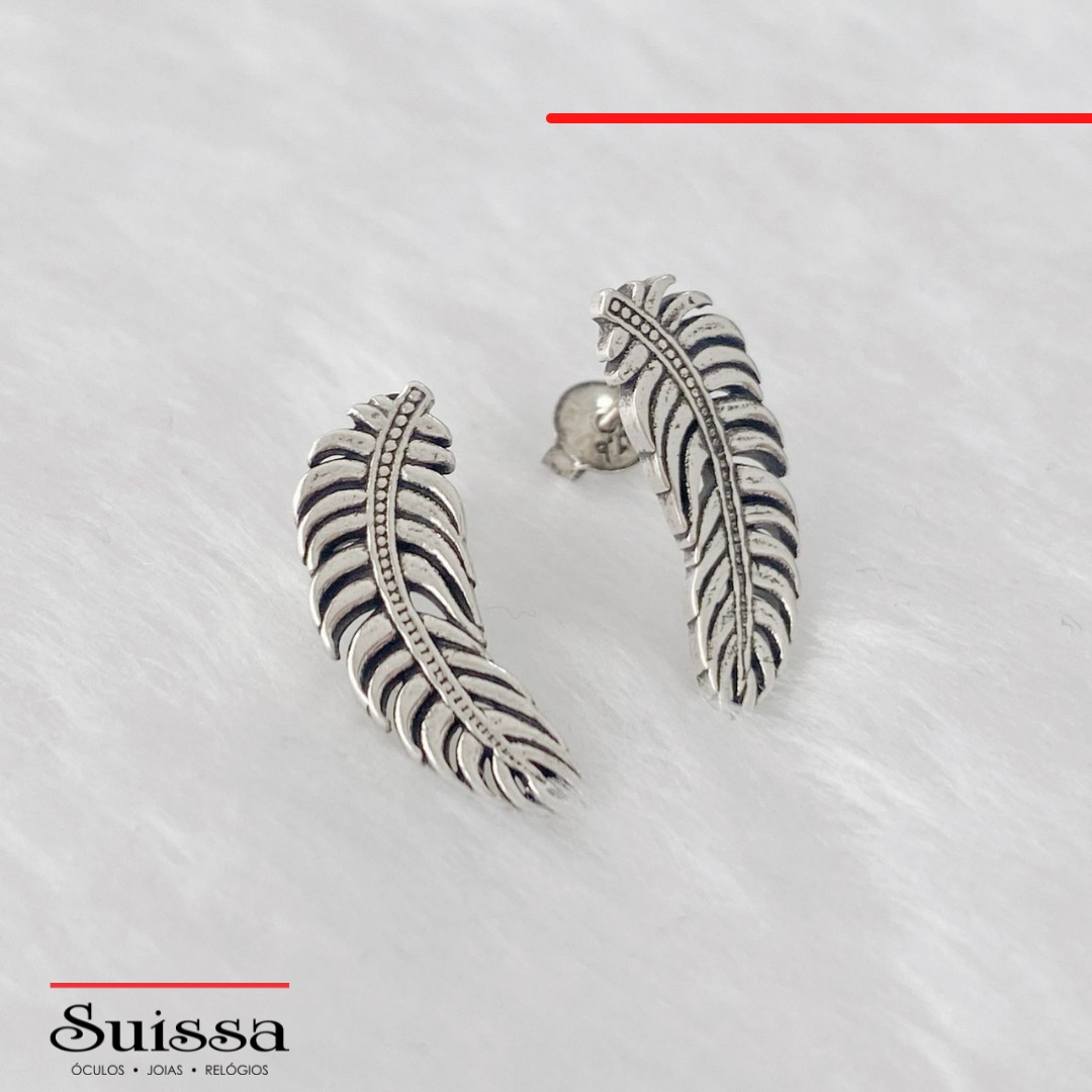 Par de Brincos em Prata 925 em Formato de Folha