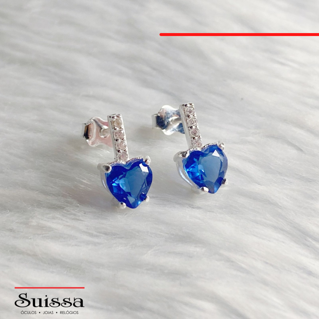 Delicadeza e charme em um par de brincos confeccionados em prata 925, com lindo coração em zircônia azul.