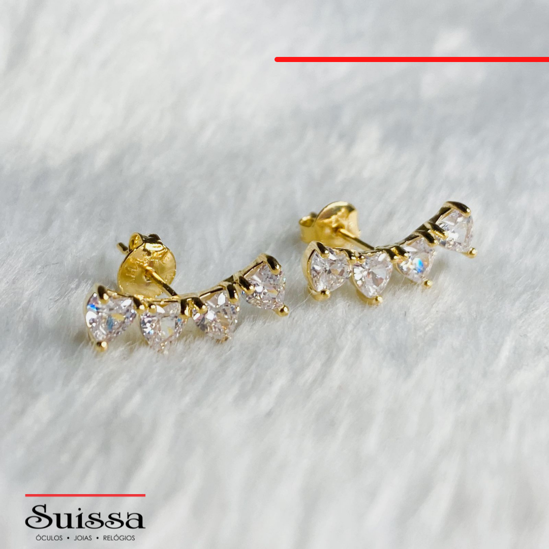 Par de Brincos Folheados a Ouro 3 Zircônias Brancas