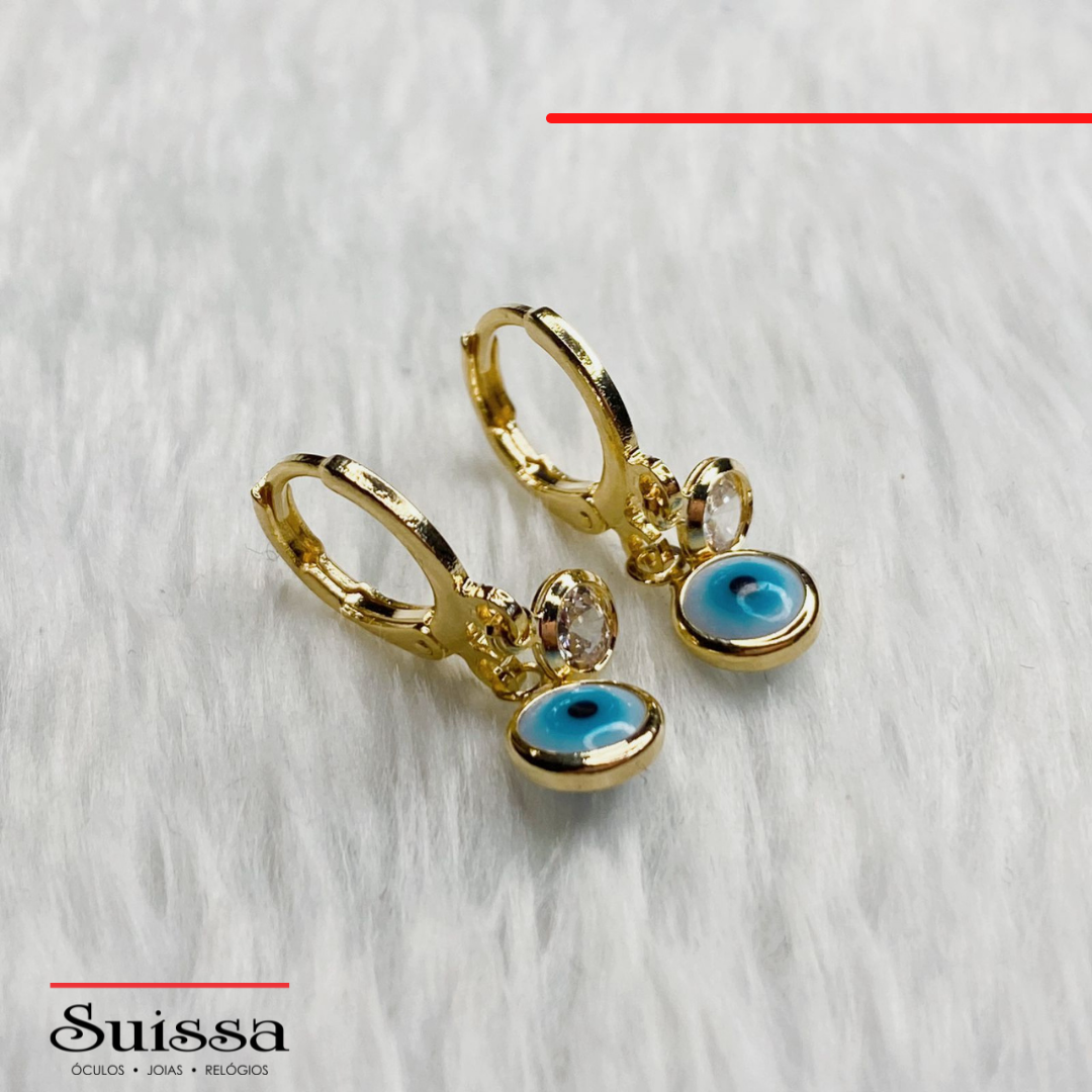 Par de Brincos Folheados a Ouro Pingente Olho Grego