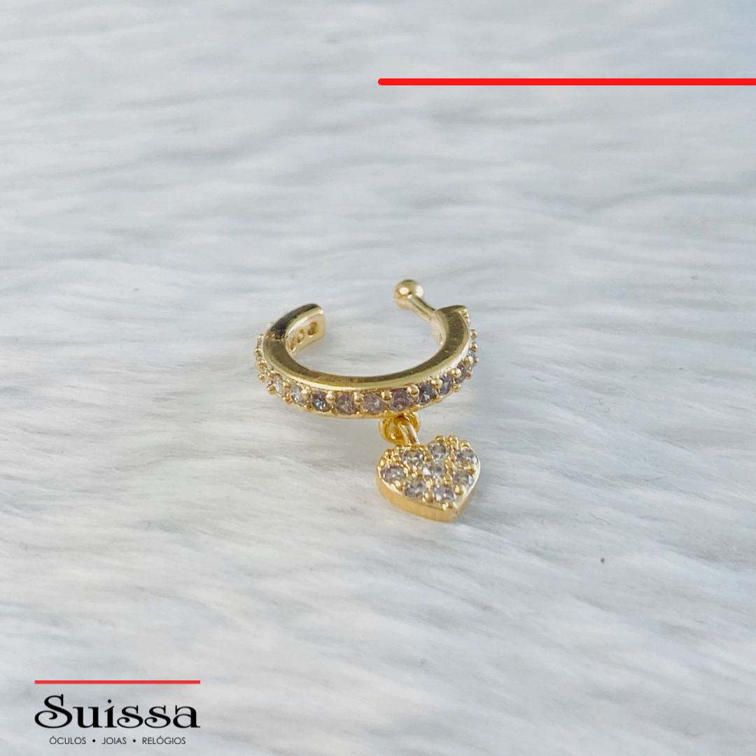 Piercing folheado a ouro 18K, com acabamento polido, pingente de coração e todo cravejado de zircônias brancas.