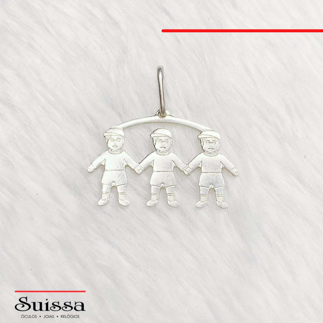 Pingente confeccionado em prata 925 modelo canga com 3 lindos meninos e acabamento polido.