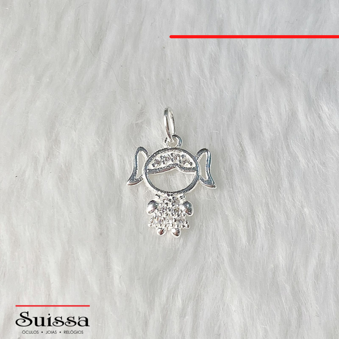 Um lindo delicado pingente confeccionado em prata 925, com lindo design de menina toda cravejada de zircônias brancas.