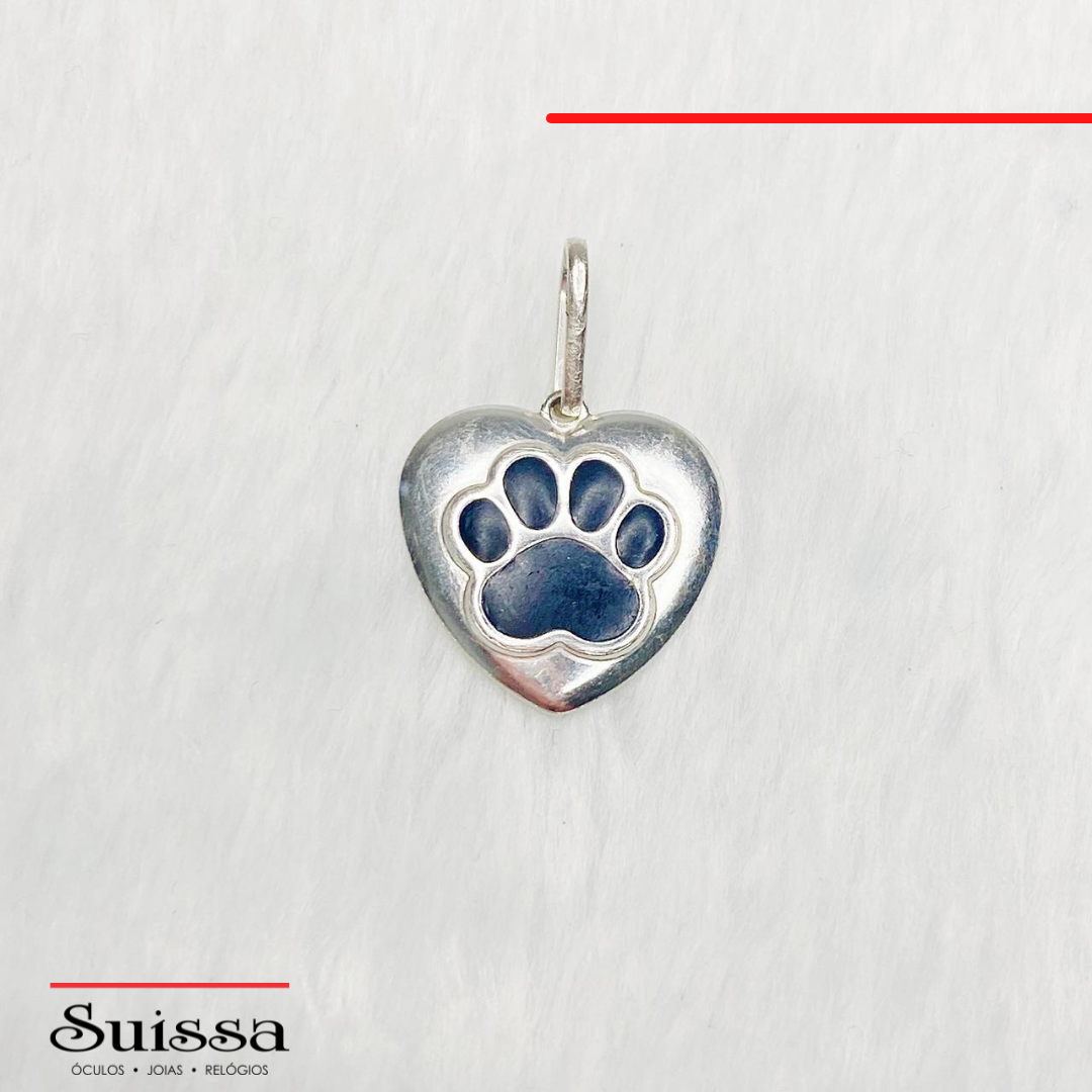 O pingente tem um lindo coração com uma patinha feita resina na cor preta. Confira!