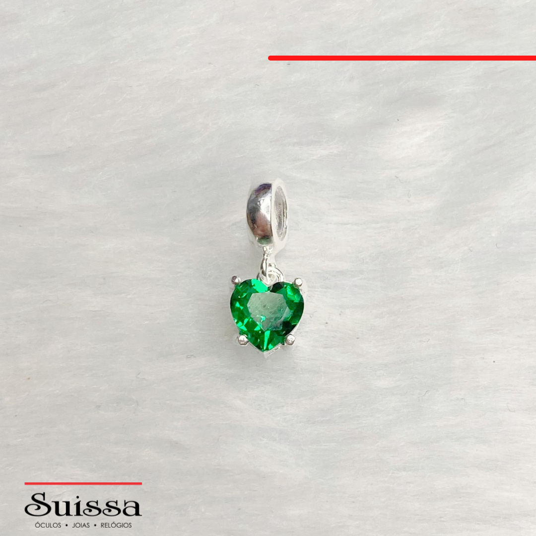 Delicadeza e charme em um pingente confeccionado em prata 925, com lindo coração em zircônia verde.