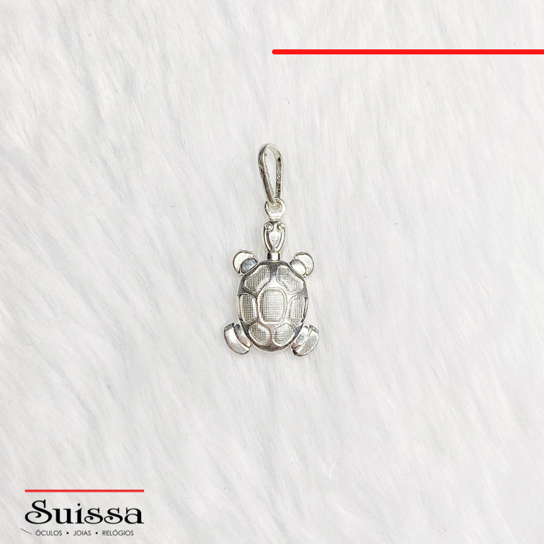 Pingente confeccionado em prata 925 com design de tartaruga com casco e acabamento polido.