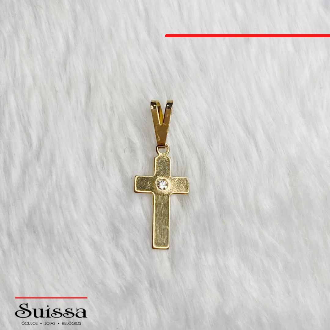 Pingente cruz folheado a ouro, com acabamento polido. Uma semijoia de alta qualidade e com uma linda zircônia branca.