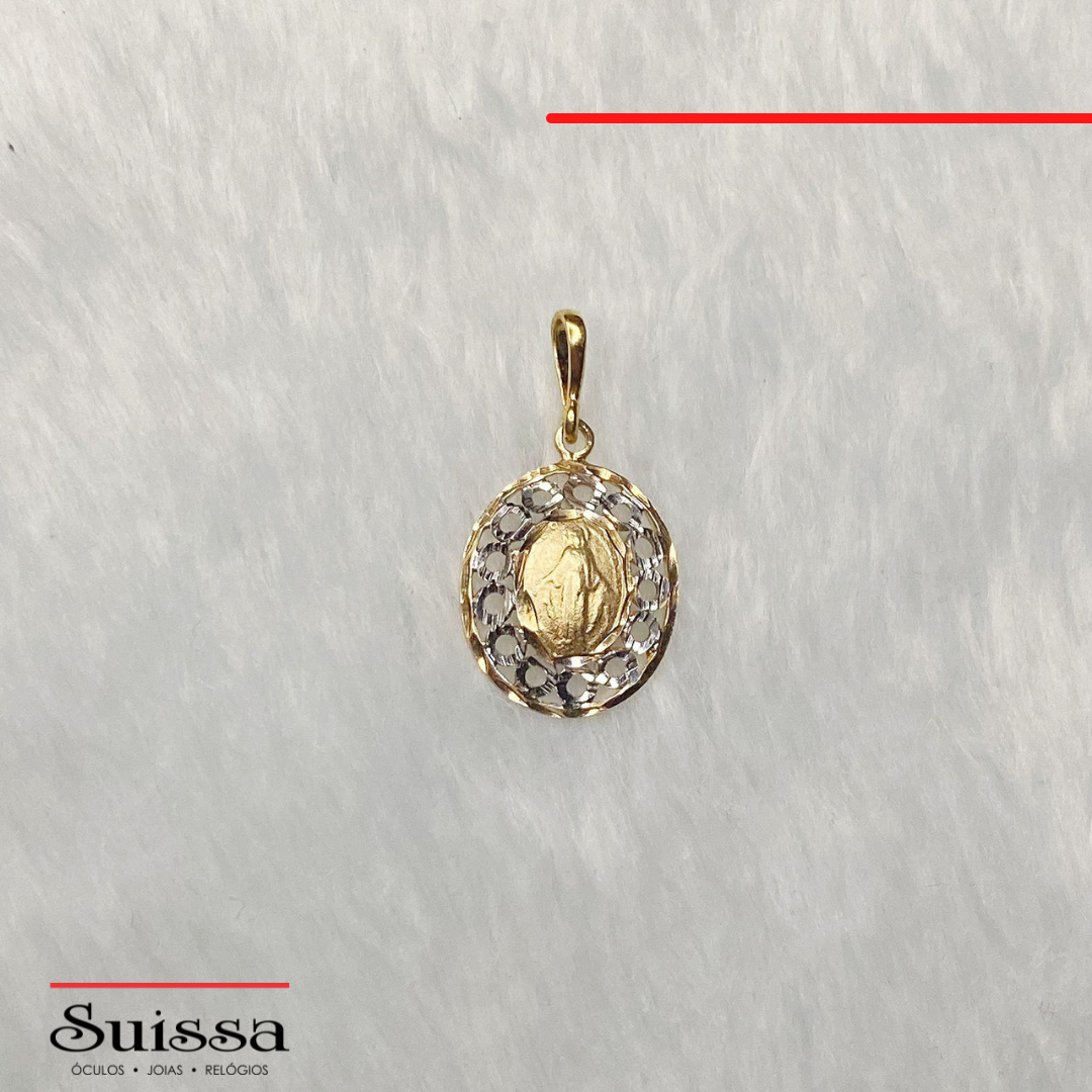Pingente folheado a ouro com acabamento fino e de alta qualidade. O pingente é da Nossa Senhora das Graças e conta com detalhes foscos e vazados.