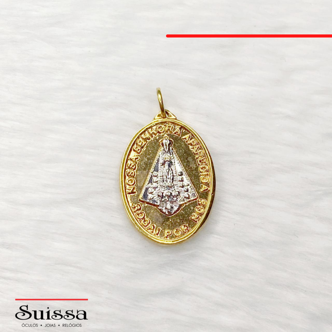Pingente Oval Semijoia Folheado a Ouro - Nossa Senhora Aparecida
