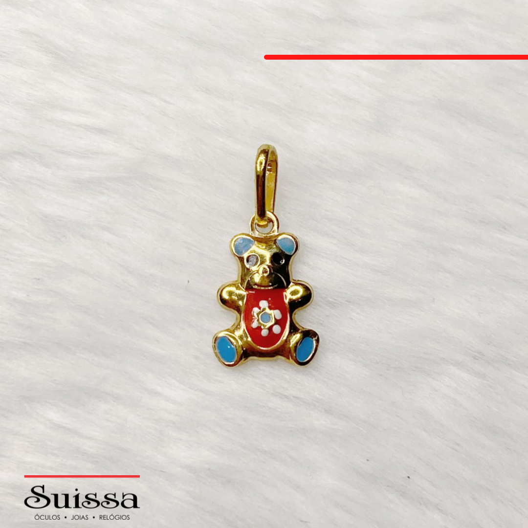 Pingente Semijoia Folheado a Ouro - Formato de Urso Colorido