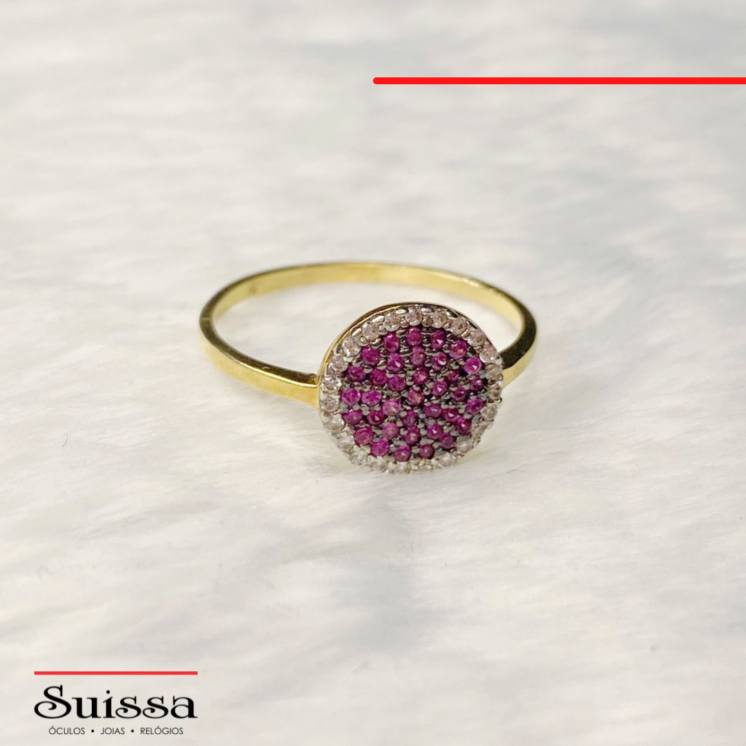 Anel Semijoia Folheado a Ouro Cravejado em Zircônias Brancas e Rosas
