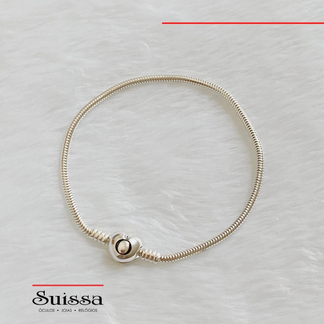Pulseira de Prata 925 Estilo Pandora com Fecho em Coração