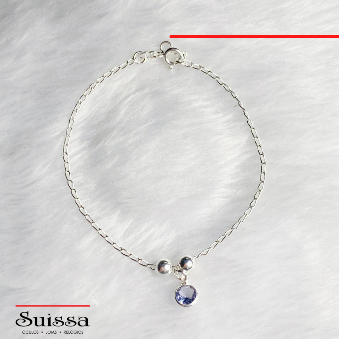 Pulseira em Prata 925 com Zircônia Redonda Lilás 20cm