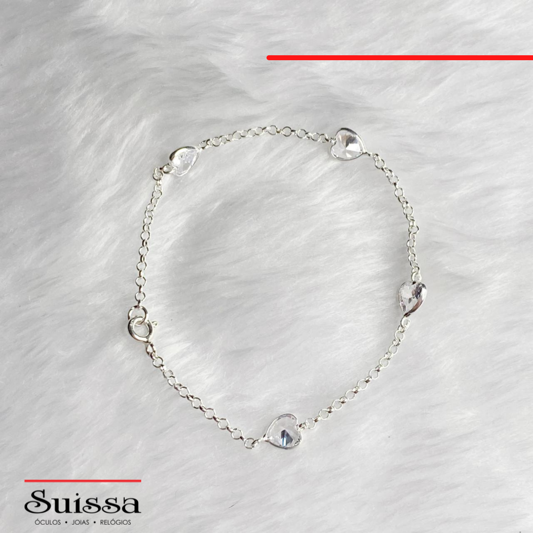 Pulseira em Prata 925 Elos Portugueses Coração em Zircônia 17cm