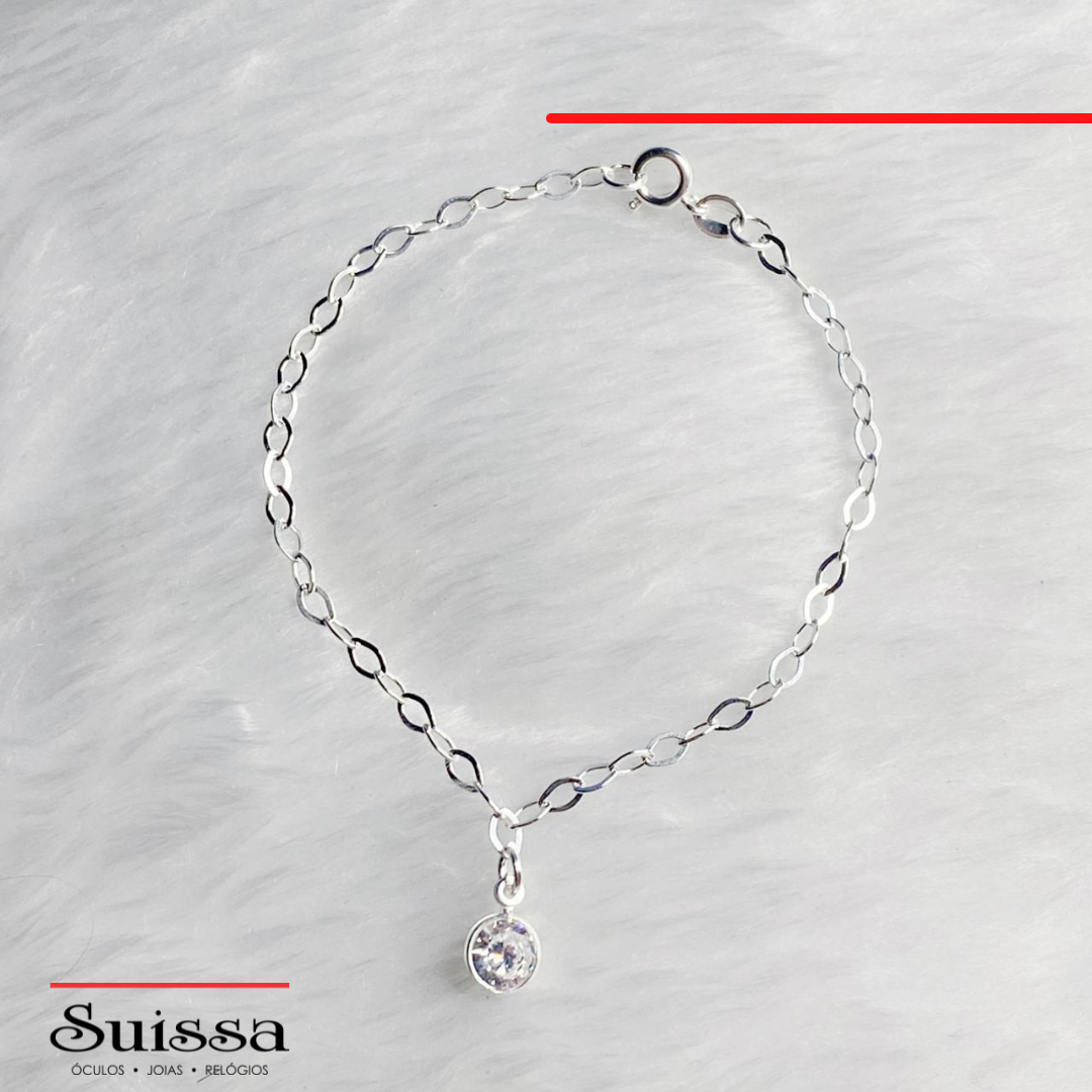 A pulseira tem elos ovais, e lindo pingente de zircônia redonda branca.