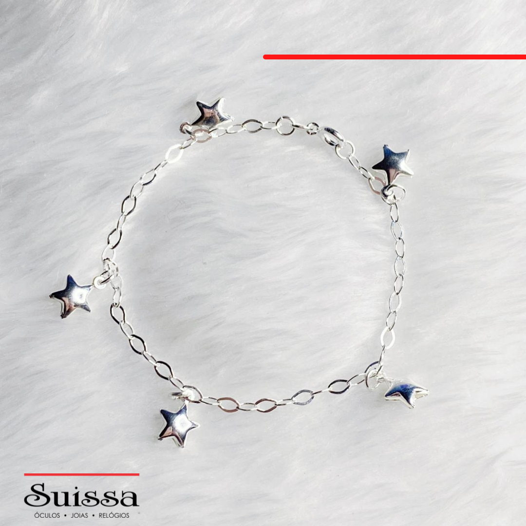 Linda pulseira confeccionada em prata 925, com elos ovais e lindos pingentes de estrelas. Venha conferir.