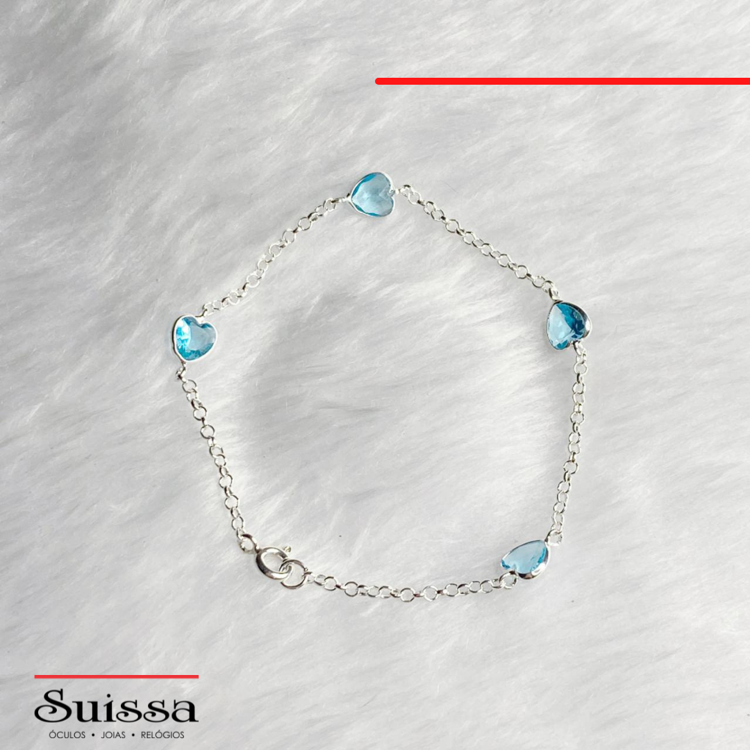 Pulseira em Prata 925 Elos Portugueses Coração em Zircônia 17cm