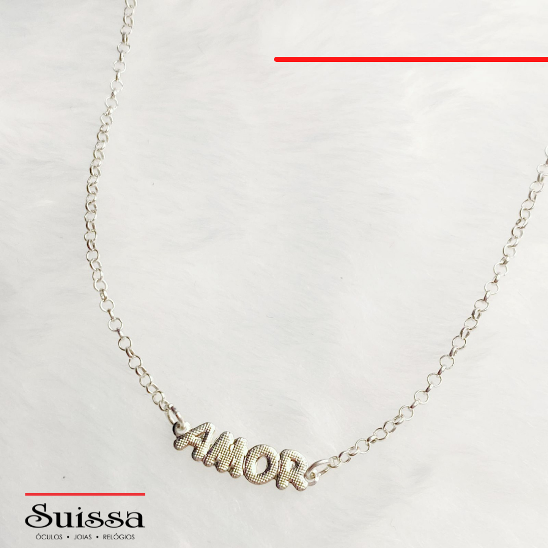 A pulseira conta com a palavra amor com acabamento fosco.