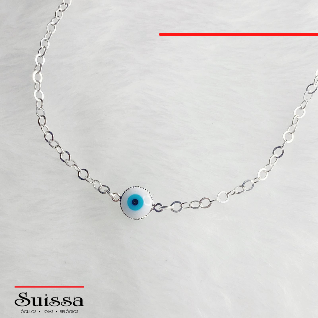 Pulseira em Prata 925 Elos Redondos e Olho Grego 18cm