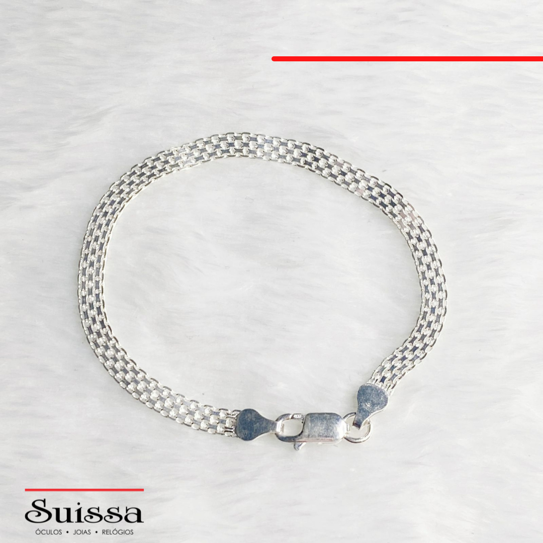 Confeccionada em prata 925, a pulseira é no modelo esteira, um modelo clássico e cheio de charme.