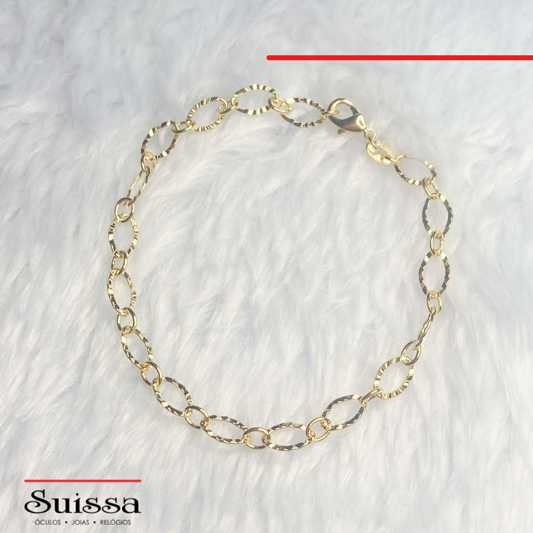 Pulseira Folheada a Ouro Elos Ovais Largos Trabalhados 18cm