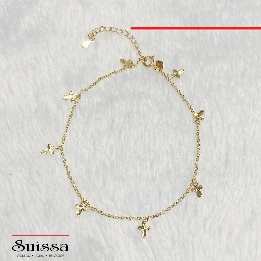 Se você é do time das que amam tornozeleira, essa peça não pode faltar na sua caixinha de acessórios. É uma semijoia folheada a ouro e ainda acompanha pingentes de cruz todo trabalhado.